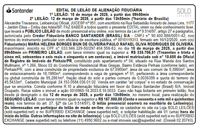 PUBLICAÇÕES LEGAIS EDITAL DE LEILÃO DE ALIENAÇÃO FIDUCIÁRIA 24 de fevereiro de 202524 de fevereiro de 2025 Jornalismo
